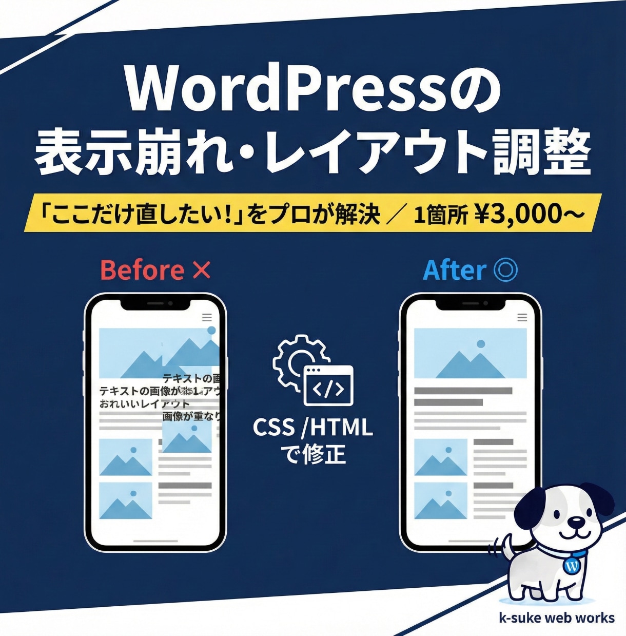 ワードプレスの表示崩れ・レイアウト調整を行ないます 1箇所からOK!スマホ対応も◎プロの技術で理想のデザ…